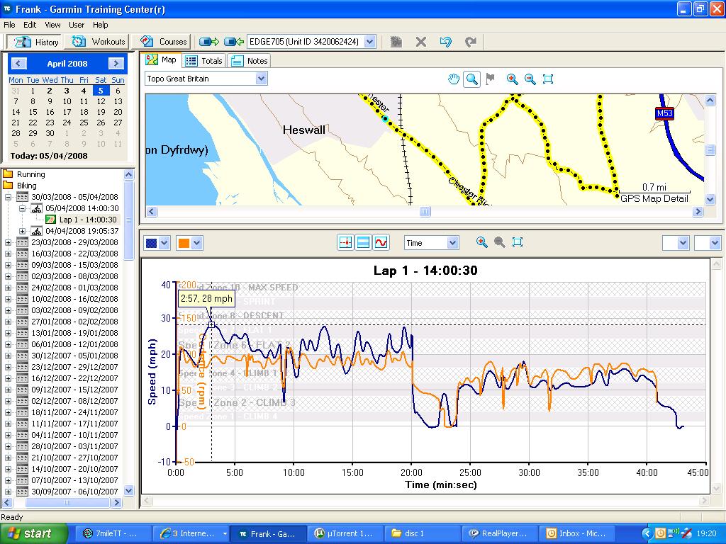 Forgot to put the HRM strap on and it was quite windy in parts but at least I have a time. Through Thornton Hough I got baulked by a horse, there was no avoiding it as a bus and a string of cars were on the opposite side of the road. Cost me maybe 10 to 15 seconds. Saw Cannondale Kev going out to the Eureka as I was heading to Drayton Motors. Being on map mode meant I couldn’t see what speed I was doing and it didn’t seem that fast in places. Anyway I make at 20 minutes give or take a second for the 7miles. I know I can do better than this.