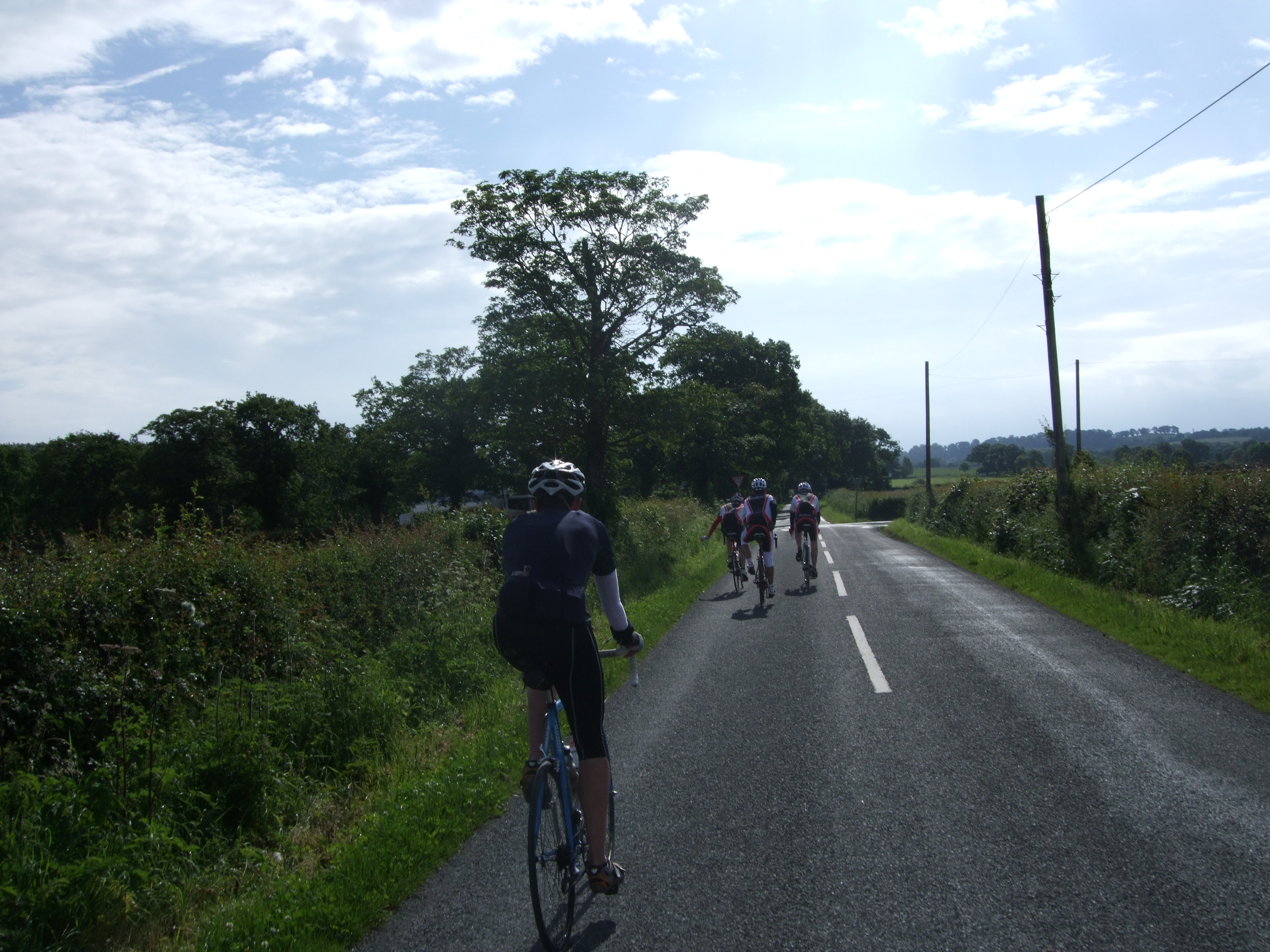t Aldford Bridge we stop to watch the roadrace come through with the break at 20 seconds. The finish line is further down the hill, a small group of riders formed waiting for the race to go by and then it ws off to the first control at the Ice Cream Farm at Great Budworth. Pity they can’t make it car free but it’s been a nice ride up to now.
