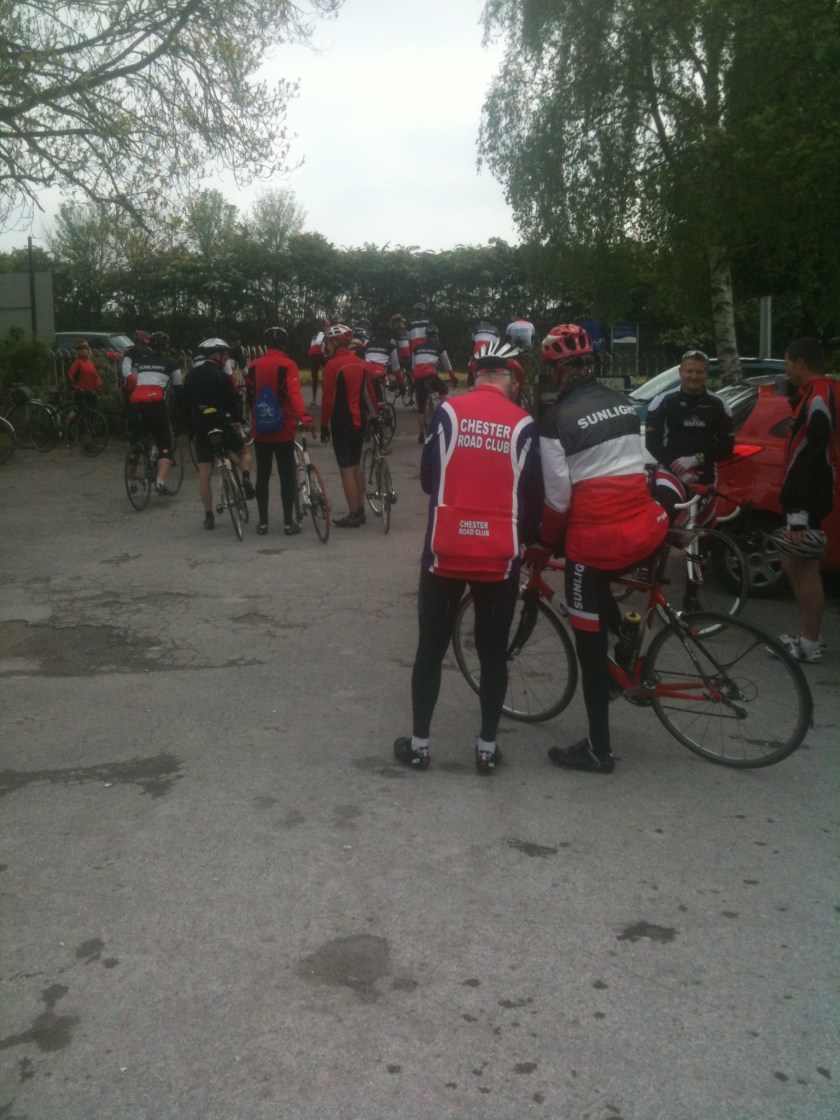 Back to the ride, Eureka Cafe for breakfast where a section of the Seamons came in, then off to Chester via the Dee, Chester race course and on to the  ICF via Saighton where the road race was on.