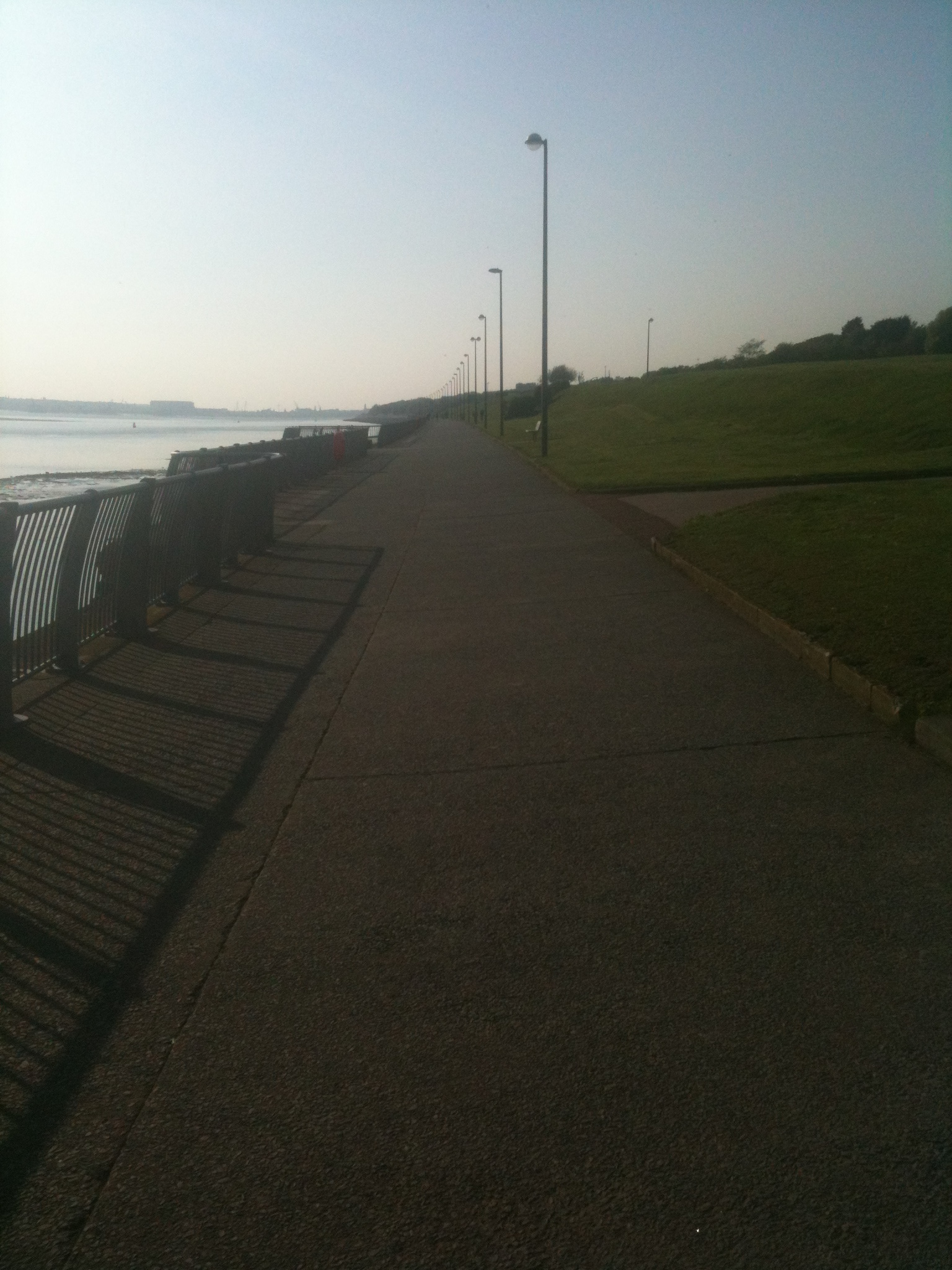 Otterspool prom, empty as it was a bit late. Can get very busy with people out for a stroll, dogs off the lead and prams.  People and bikes with a plastic pint glass from the Brittania Pub are another. I kid you not.