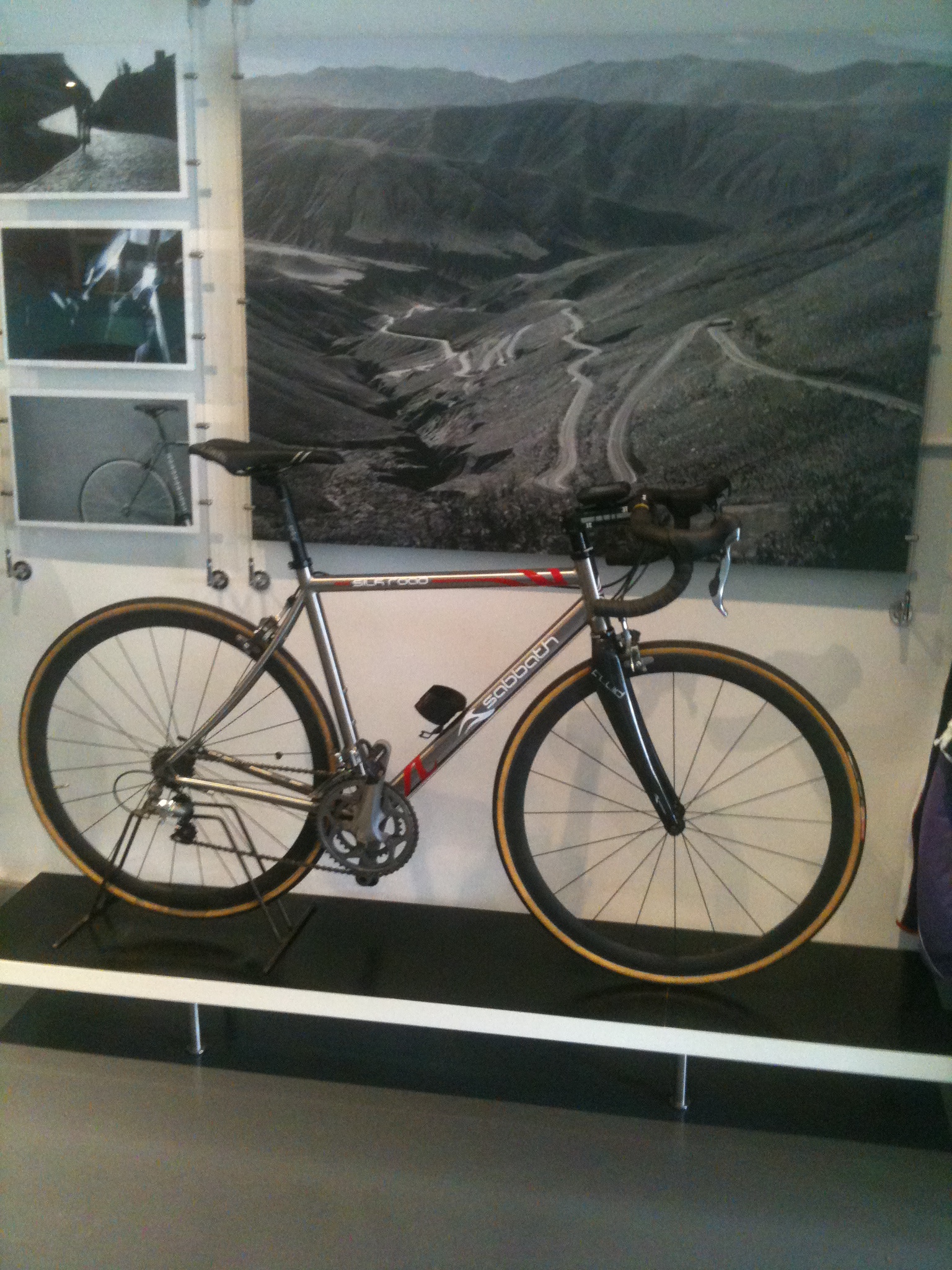 This is my new toy a Sabbath Silk Road. It weighs in at 8.8 Kg with the Fulcrum Racing wheels that it came with. It’s pictured above with the Speedy Li tubs.