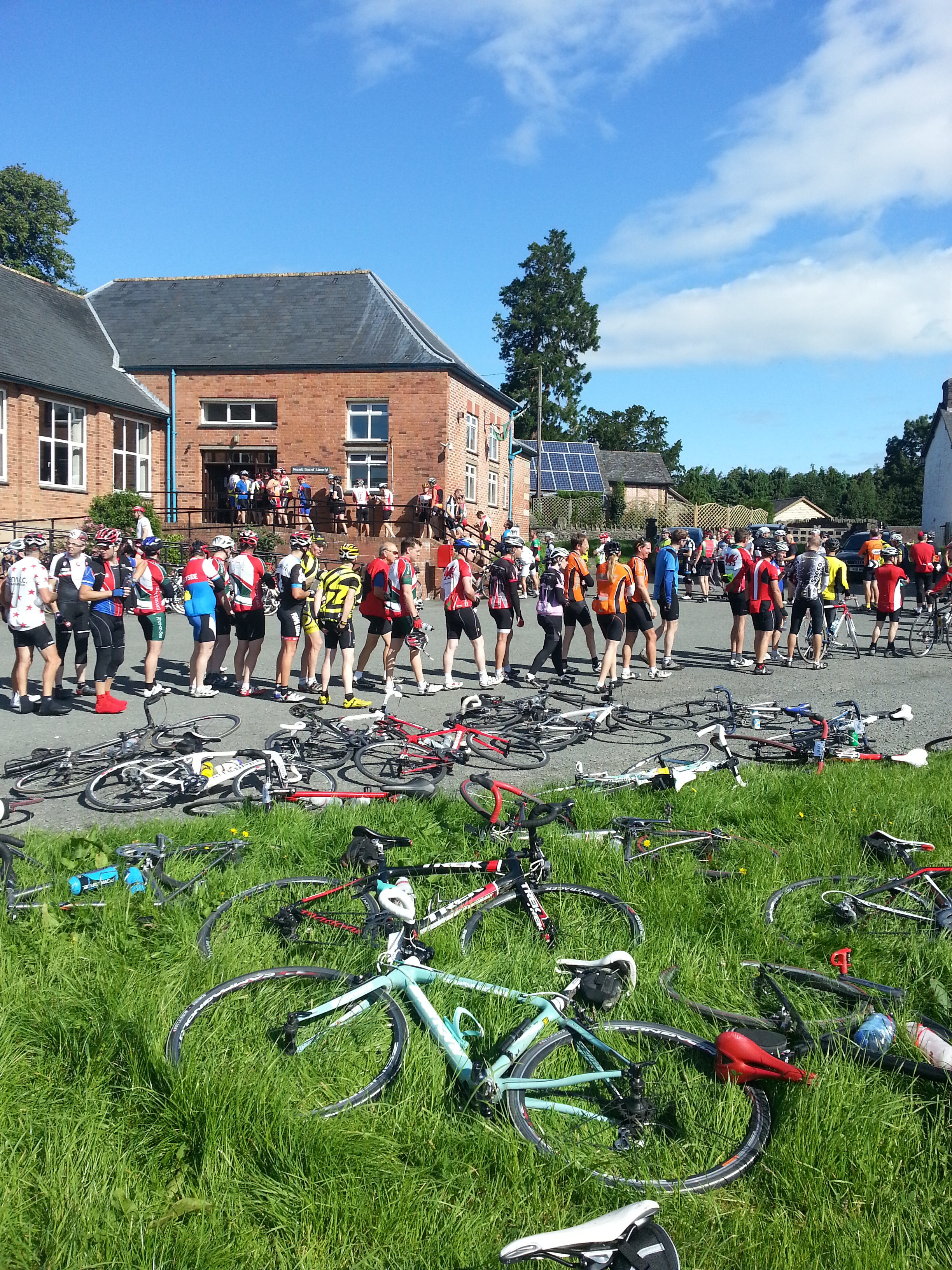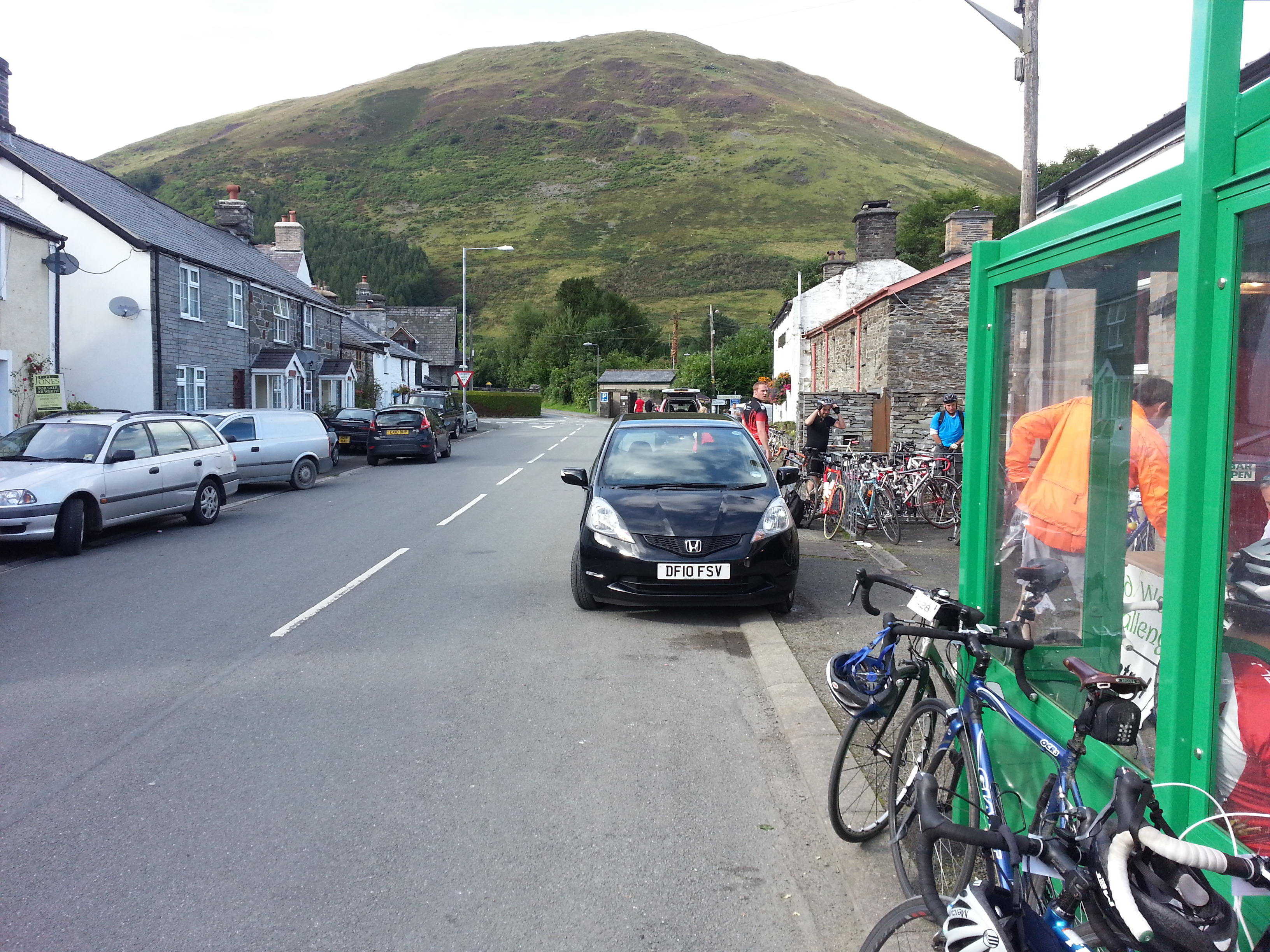 There was a stop at Machynlleth for food and drink with riders emptying the shelves of the Co-op of water. The shop manager coming out with a plastic bag to put the empty or not so empty bottles in.
